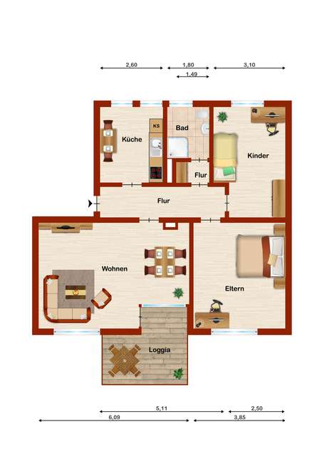 Zusätzlich verfügt die Wohnung über einen Kelleraum mit 14,15 m² sowie