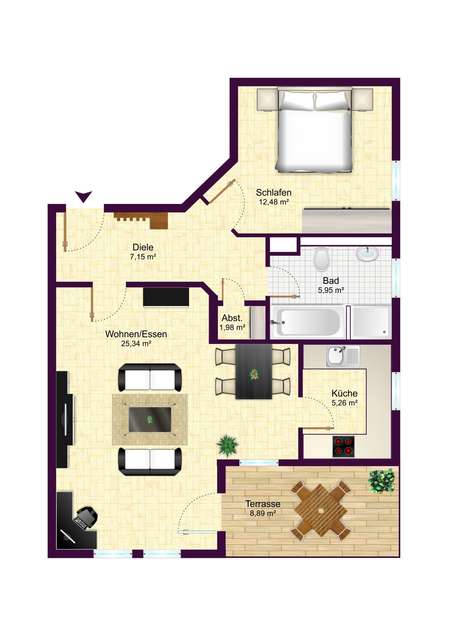 VERKAUFT! Gepflegte Terrassenwhg im Heidestock! 2 ZKBT-60 m² mit EBK Wi-Sonnenberg € 238.000,-