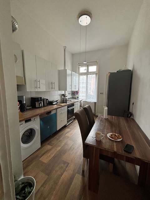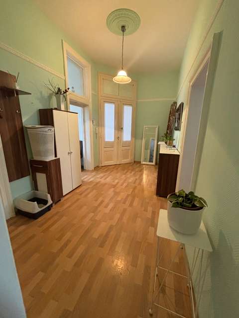 Die Wohnung befindet sich im 2.OG eines denkmalgeschützten Stilaltbau mit 7 Wohneinheiten und besteht aus: