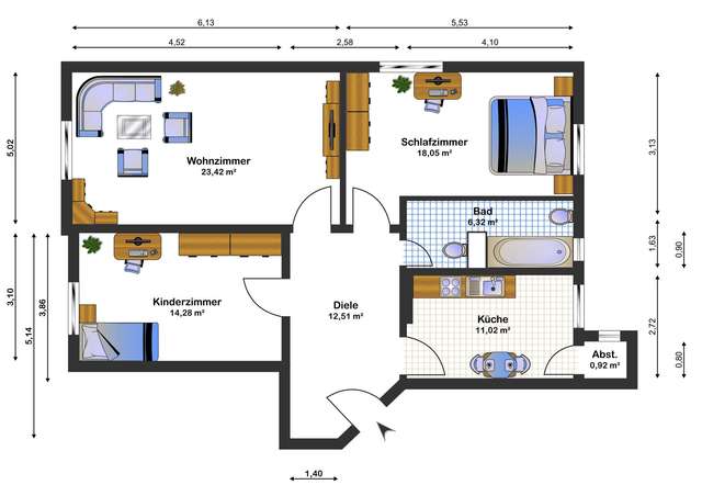 Die Wohnung ist seit 2010 vermietet zu einem Mietpreis von € 600,- Kaltmiete.