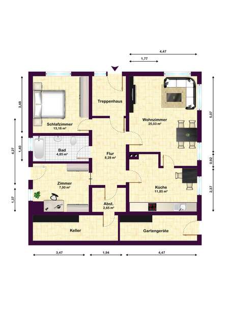 Im EG ist ein Kellerraum für die ELW und ein Gartengeräteraum vorhanden.