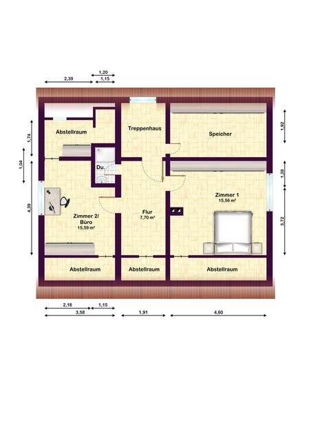 Im Dachgeschoss sind ein geräumiger Speicherraum sowie mehrere Abseiten als weitere Stauräume vorhanden.