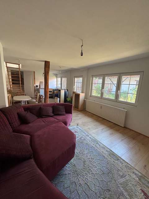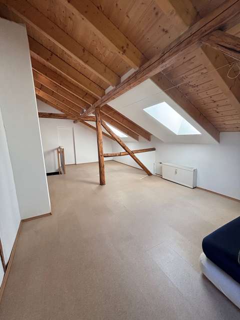 einem Schlafzimmer im Hochparterre und einem großen Wohnschlafraum mit Tageslichtbad im Obergeschoss. Zusätzlich verfügt das OG über einen Abstell- und Speicherraum.