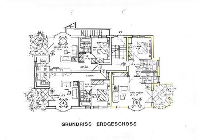 Die Wohnung liegt im Hochparterre und besteht aus: