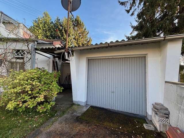 Nebengebäude, einer Einzelgarage und Garten.