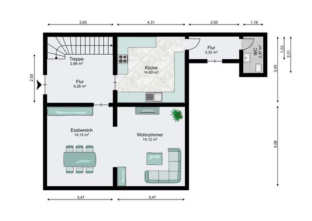 EG - mit 2,61 m Deckenhöhe